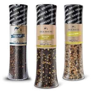 Introducing the ultimate Giant Spice Grinder Pepper Bundle. Elevate your culinary experience with our premium set of three extraordinary spice grinders, each designed to infuse your dishes with an explosion of flavour. This bundle includes our renowned Whole Black Pepper Grinder, Tropical Pepper Grinder, and the zesty Lemon Pepper Grinder.