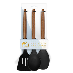 Acacia Wood & Black Silicone Set of 3 Utensils Set