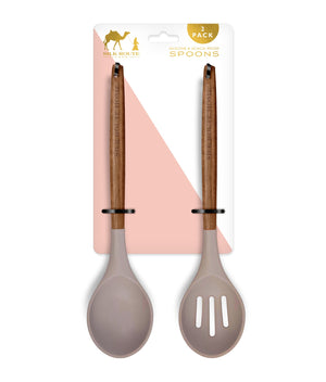 Acacia Wood & Grey Silicone Spoon Set Of 2
