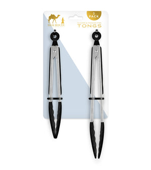 Stainless Steel & Black Silicone Pack of 2 (9" & 12") Food Tongs