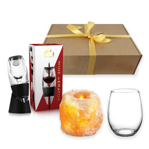 Wine Glass & Aerator With Himalayan Salt Tealight Holder Gift Set