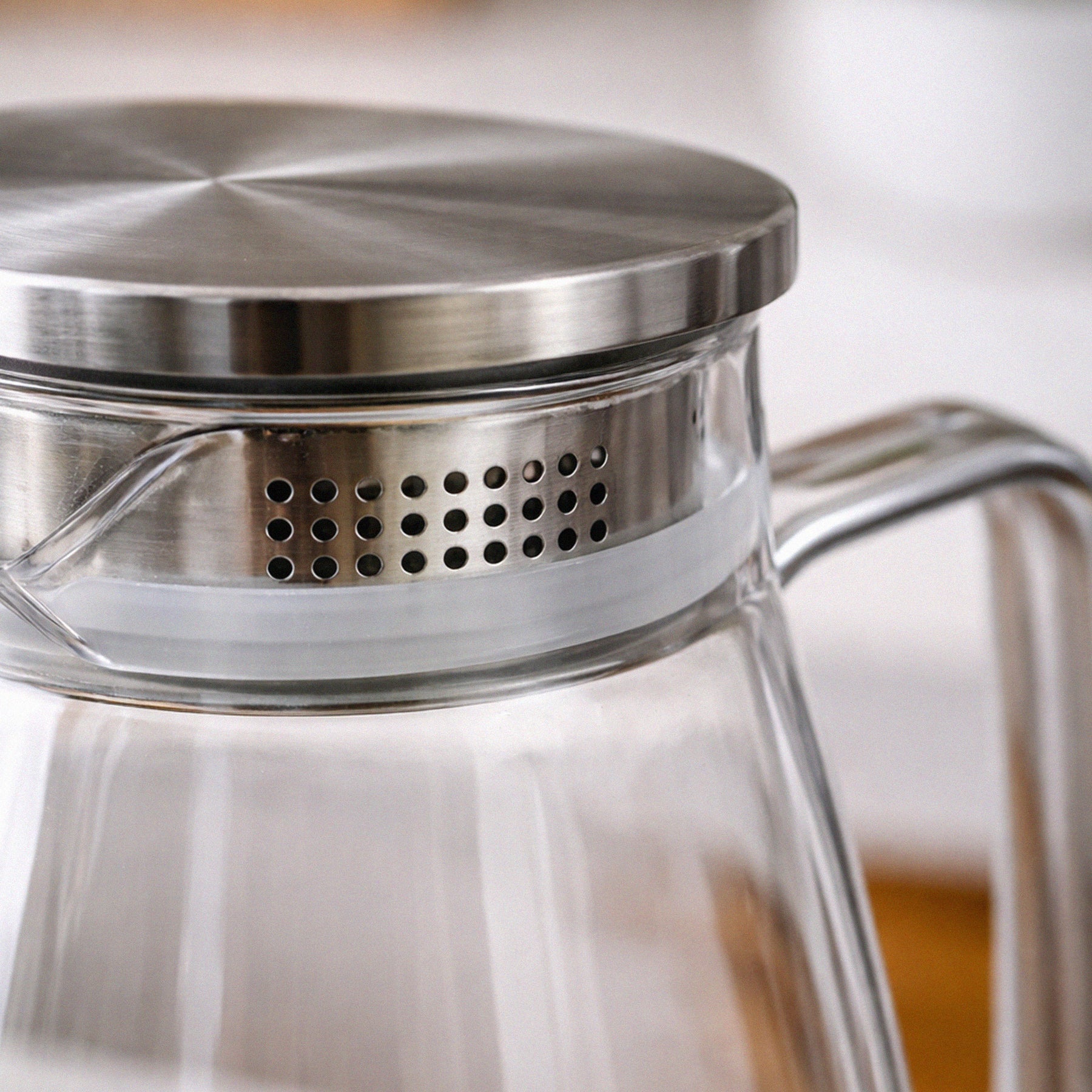 Introducing our Glass Pitcher With Stainless Steel Lid, a must-have for any beverage enthusiast. Crafted with precision and designed to impress, this pitcher jug combines elegance with practicality. The 2 litre capacity ensures you have plenty of refreshments to serve, making it ideal for gatherings, parties, or simply enjoying a large batch of your favourite beverage.